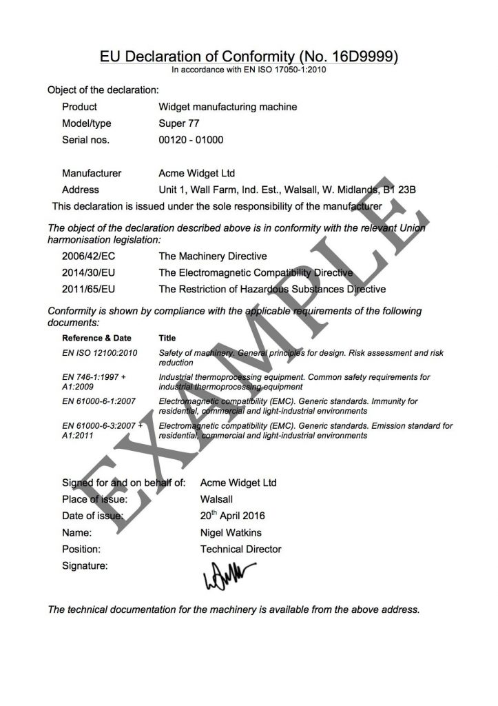 聲明需要由有權代表制造商作出具有約束力的承諾的人簽署,但為了使聲明真正有意義,簽字人也應該是有權提交確保CE所需資源的人。標記過程正確完成。 “宣言”的作用是確定公司中的個人,如果產品上的CE標記證明無效,則該個人可以承擔責任。
