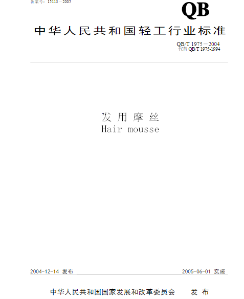 發(fā)用摩絲 QB 1643質(zhì)檢報告標(biāo)準(zhǔn),