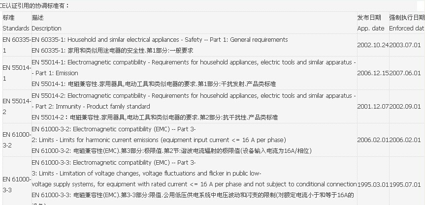 CE認(rèn)證引用的協(xié)調(diào)標(biāo)準(zhǔn)有: